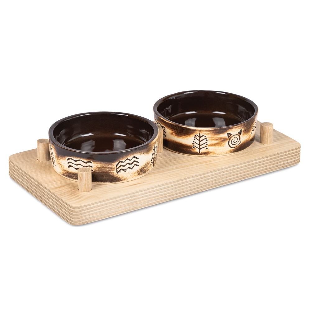 Практична і стильна дерев’яна підставка дозволяє розмістити дві миски поряд. Це зручно і для улюбленця, і для вас. Завдяки спеціальним фіксаторам миски не ковзають і не падають з підставки, проте їх легко виймати і мити.