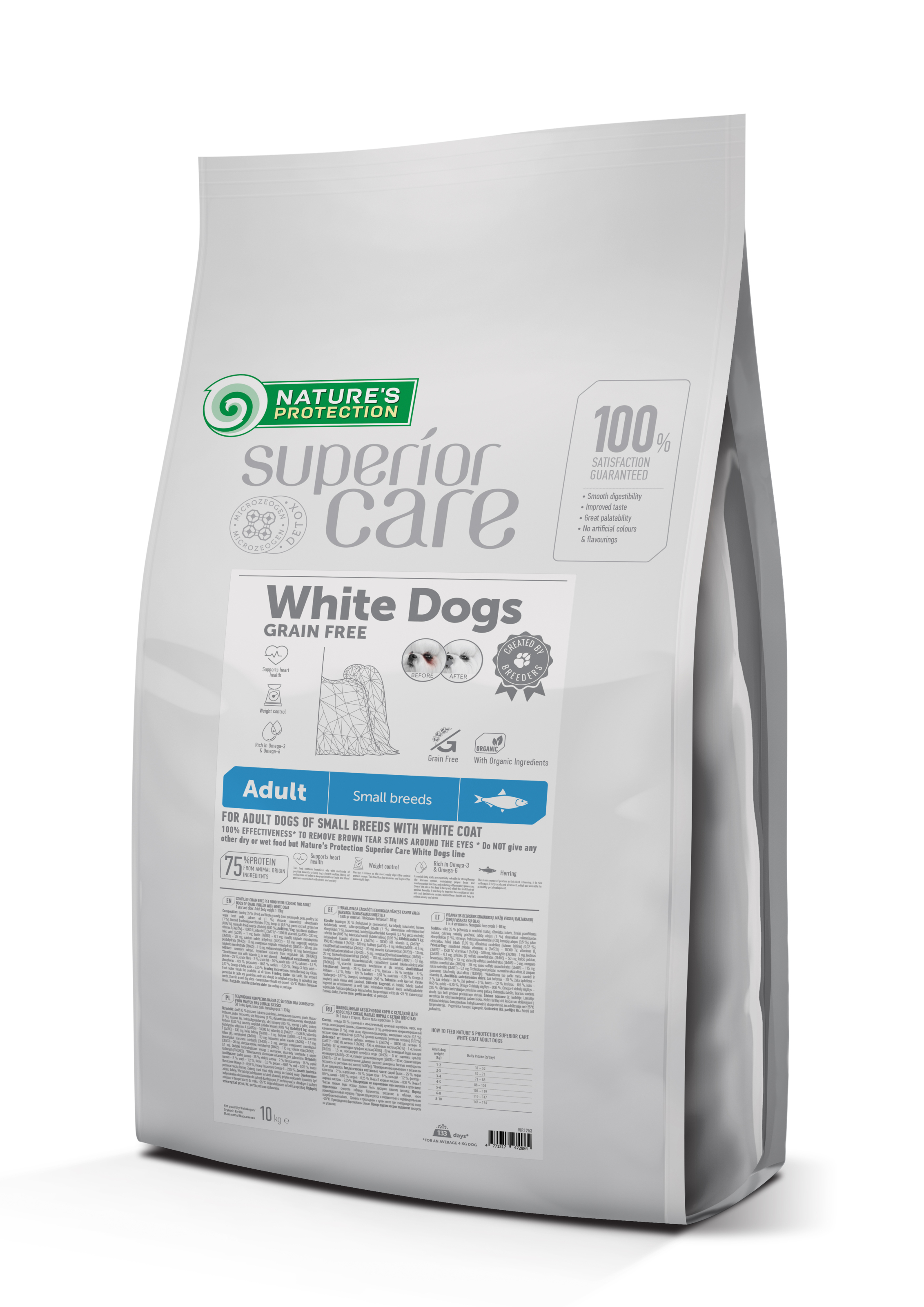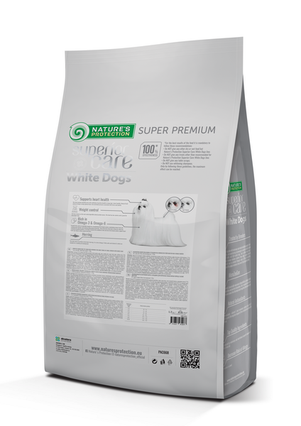 Nature's Protection White Dog Grain Free with Herring Adult Small Breed – корм cупер-преміум класу з оселедцем, розроблений спеціально для дорослих білошерстих собак усіх порід.